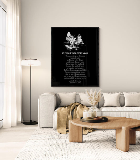 We Choose To Go To The Moon Art Print | JKF Quote | John F Kennedy | Space Exploration | Landing Modern Home Decor | Inspirational Poster