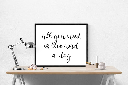 All You Needs Is Love And A Dog | Dog Lover | Puppy Decor | Living Room | Gift For Animals | Art Print