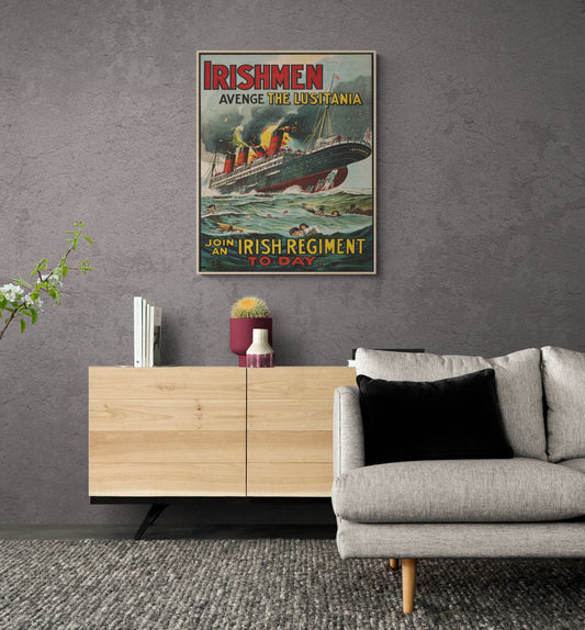 Avenge The Lusitania | Join An Irish Regiment Today | Military | Army | Marines | Navy | WW1 | World War | Vintage Poster | Art Print