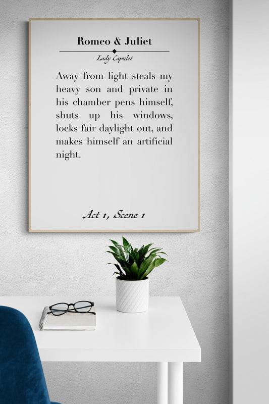 Away From Light Steals My Heavy Son | William Shakespeare | Romeo And Juliet | Literary Quote | Book Page | Art Print