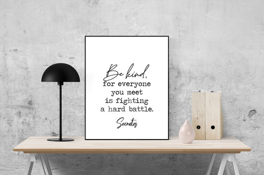 Be Kind For Everyone You Meet Is Fighting A Hard Battle | Socrates | Athenian Philosopher | History | Mental Health Awareness | Art Print