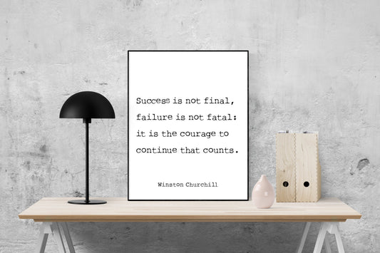 Winston Churchill Life Quote | Success Is Not Final | Modern Minimalist Art | Inspirational Print | Black & White | Office Decor Typewriter