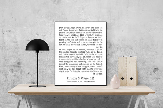 Winston Churchill Life Quote | We Shall Fight On The Beaches | Modern Minimalist Art | Inspirational Print | Black & White | Office Decor
