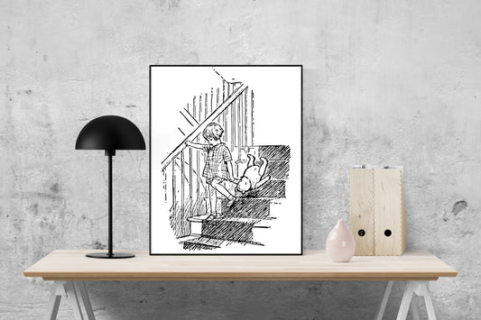 Winnie-the-Pooh | Going Downstairs | AA Milne | Original Illustrations | Art Print