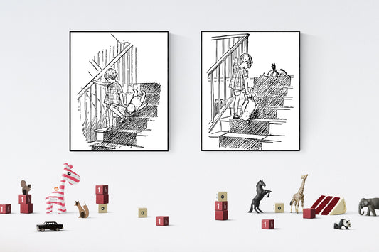Winnie-the-Pooh | Going Upstairs And Downstairs | Set of 2 | AA Milne | Original Illustrations | Art Print