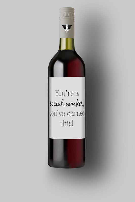 You're A Social Worker, You've Earned This | Custom Bottle Labels | Personalized Bottle Labels | Coworker Gift