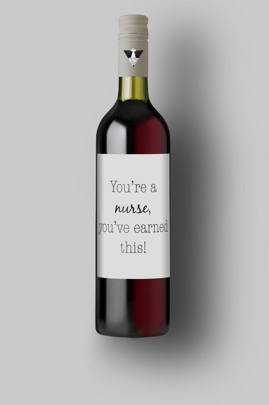 You're A Nurse, You've Earned This | Custom Bottle Labels | Personalized Bottle Labels | Coworker Gift