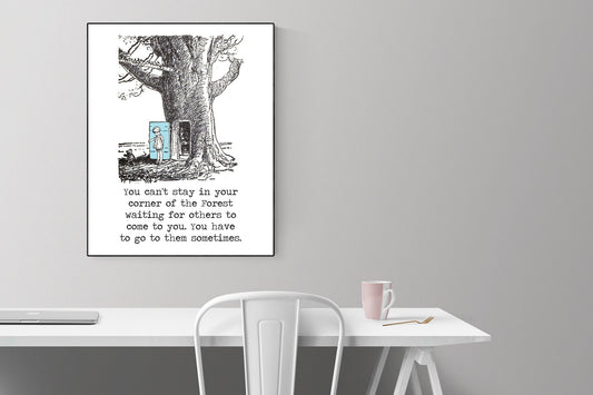 You Can't Stay in Your Corner Of The Forest Waiting For Others | Winnie the Pooh | AA Milne | Blue Door | Art Print
