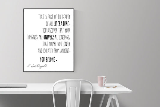 You're Not Lonely And Isolated From Anyone. You Belong | F. Scott Fitzgerald Quote | Love Art Print