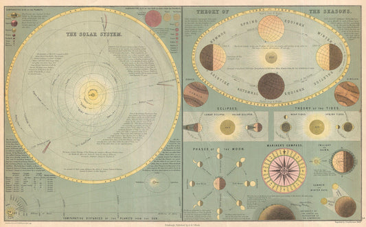 Solar System Chart Art Print Set | 19th Century Astronomy Map Reproduction | Vintage Two-Piece Wall Home Decor | Celestial Science Poster