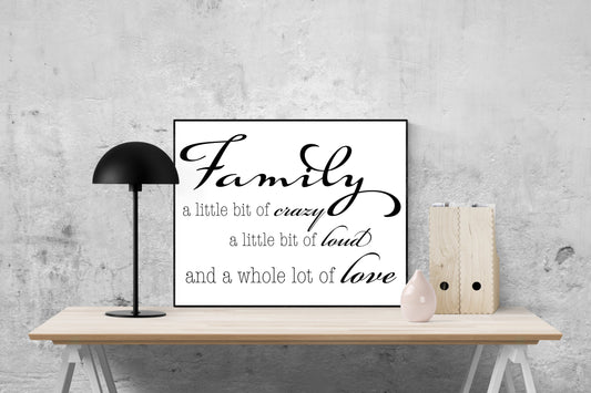 Family: A Little Bit of Crazy, A Little Bit Of Loud, And A Whole Lot of Love | Family Rules Quote Art Print