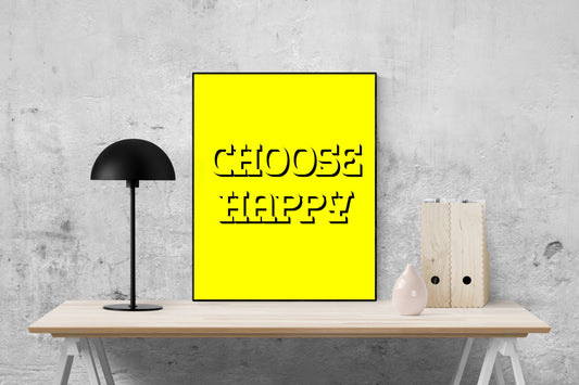 Choose Happy Print | Yellow Wall Art Prints | Dorm Wall Artwork | Inspirational Quote Print