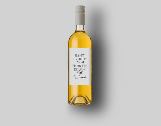 Happy Birthday, Mom | From The Reason You Drink | Custom Bottle Labels | Personalized Bottle Labels | Fun Birthday Gift For Mom