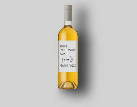 Pairs Well With Small Family Gatherings | Custom Bottle Labels | Personalized Bottle Labels | Party Favor Gift