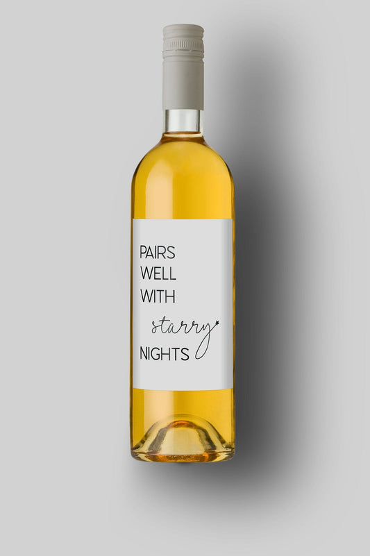 Pairs Well With Starry Nights | Custom Bottle Labels | Personalized Bottle Labels | Date Night