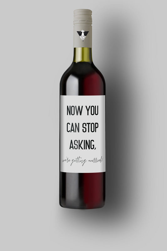 Now You Can Stop Asking | We're Getting Married | Custom Bottle Labels | Personalized Bottle Labels | Engagement Wedding Announcement