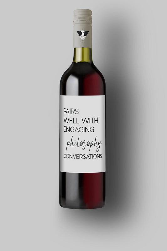 Pairs Well With Engaging Philosophy Conversations | Custom Bottle Labels | Personalized Bottle Labels | Party Favor