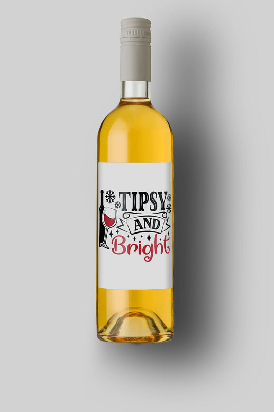 Tipsy And Bright | Custom Bottle Labels | Personalized Bottle | Christmas Holidays Label