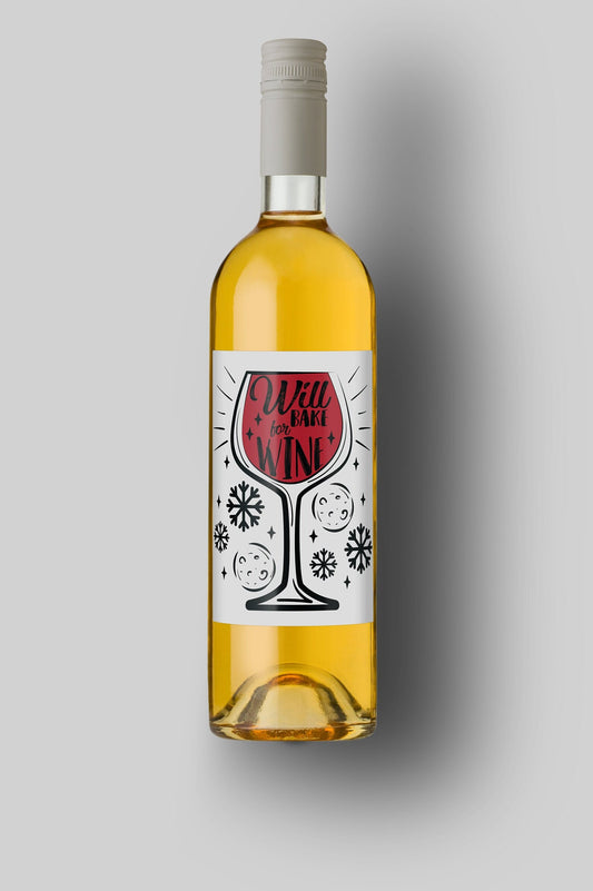 Will Bake For Wine | Custom Bottle Labels | Personalized Bottle | Christmas Holidays Label