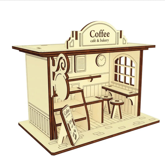 Coffee Cafe & Bakery Miniature | Assembly And Painting Required | Bookshelf Nook Insert
