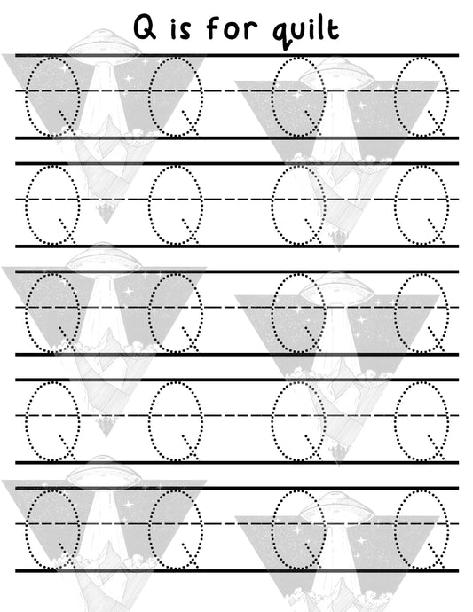 Digital Download | Q Is For Quilt | Primary Letter | Practice Writing Alphabet | Single Page PDF File | Print As Many As You Need