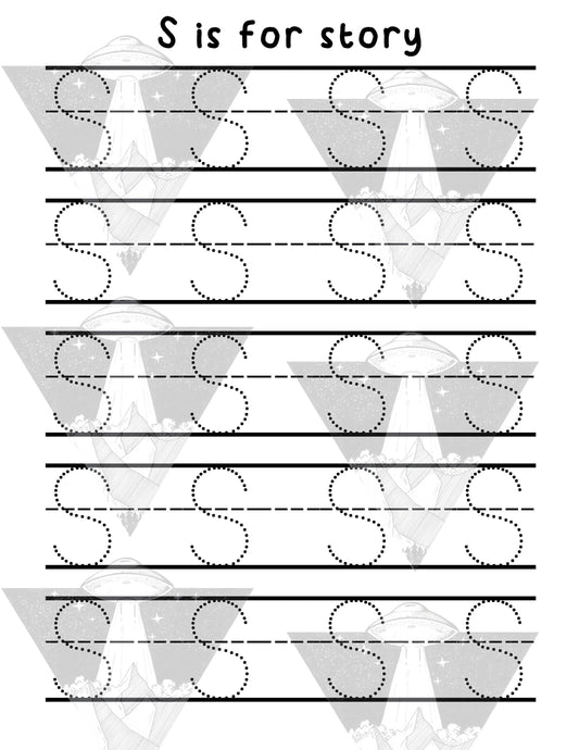Digital Download | S Is For Story | Primary Letter | Practice Writing Alphabet | Single Page PDF File | Print As Many As You Need