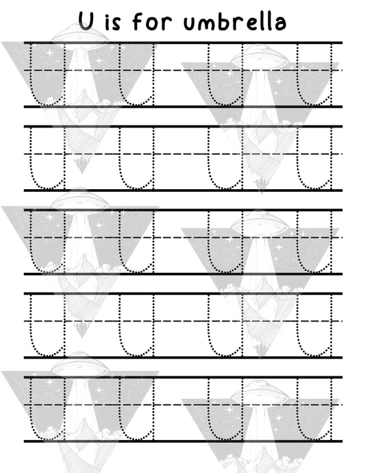 Digital Download | U Is For Umbrella | Primary Letter | Practice Writing Alphabet | Single Page PDF File | Print As Many As You Need
