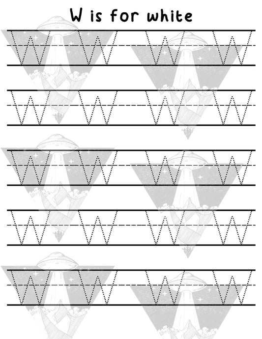 Digital Download | W Is For White | Primary Letter | Practice Writing Alphabet | Single Page PDF File | Print As Many As You Need