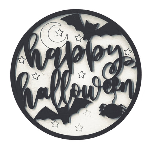 DIY Paint Your Own Happy Halloween Sign | Fall Decor | 2-Layer | Do It Yourself | Size: 9 x 9 in | Painting and Assembly Required