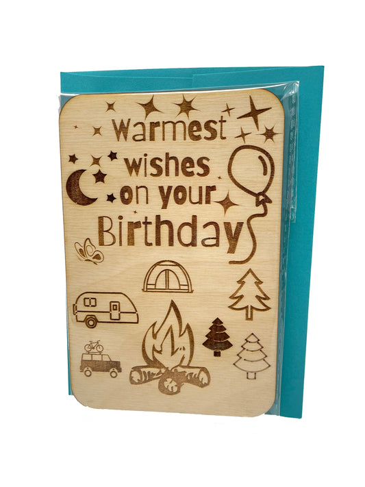 Happy Birthday Card | Camping Theme | Warmest Wishes On Your Birthday | Made of Baltic Birch Wood