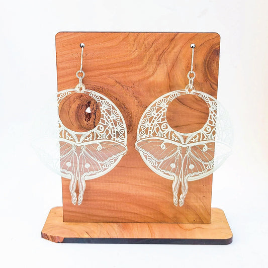 Luna Moth Dangle Earrings | Wood And Acrylic | Dangle Earring