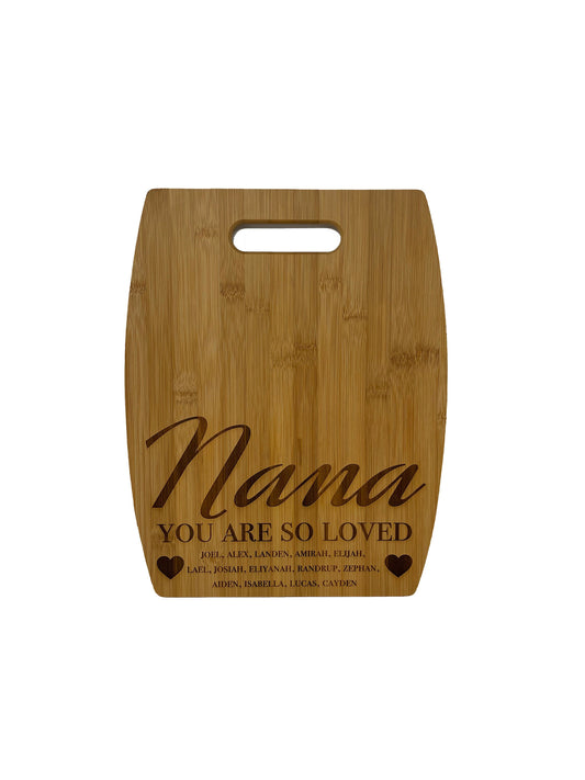 Nana, You Are So Loved | Grandchildren Names | Present For Mom | Bamboo Cutting Board