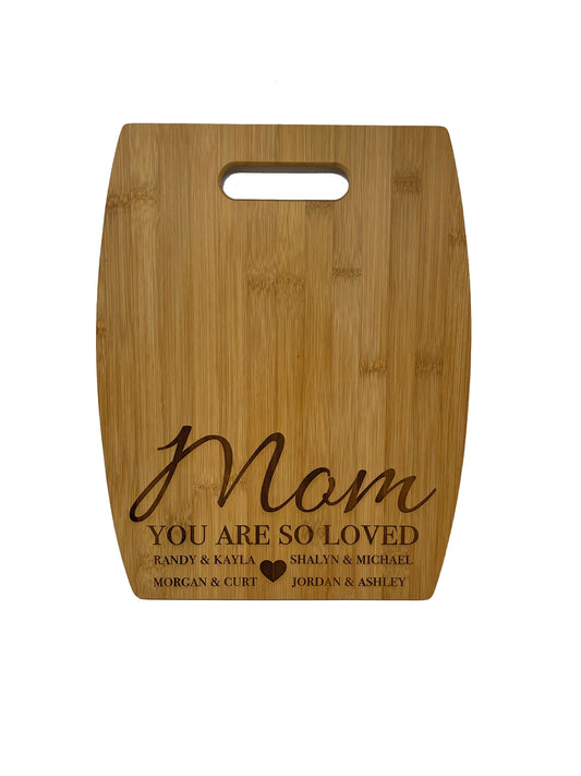 Mom, You Are So Loved | Children Names | Present For Mom | Bamboo Cutting Board