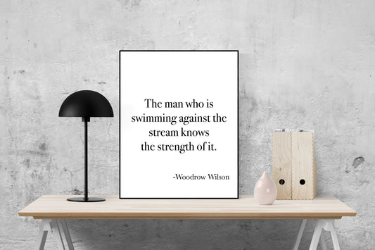 The Man Who Is Swimming Against The Stream Knows The Strength Of It | Woodrow Wilson | Art Print