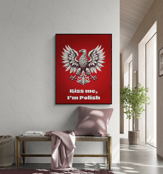 Kiss Me I'm Polish | Eagle - Pulaski Polska Polski Orzel Red Home Decor - Unframed Heritage Wall Art Print
