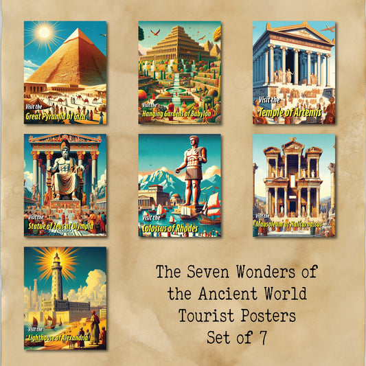 Seven Wonders of the Ancient World Tourist Poster | Travel | Cultural Home Decor | History | Wall Art Print