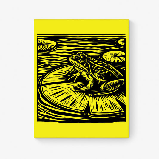 Serene Pond Observer Frog on Lily Pad Lithograph Art Print