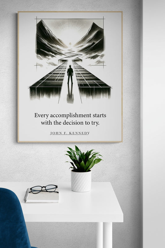 Every Accomplishment Starts With The Decision To Try from John F Kennedy JFK Art Print