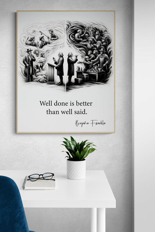 Well Done Is Better Than Well Said by Benjamin Franklin Quote Inspirational Art Print