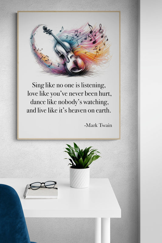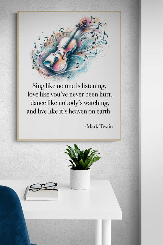 Sing Like No One's Listening Love Like You've Never Been Hurt Dance Like Nobody's Watching by Mark Twain Violin Art Print
