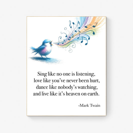 Mark Twain Quote Art Print | Sing Like No One's Listening | Inspirational Wall Artwork | Colorful Songbird | Literary Poster