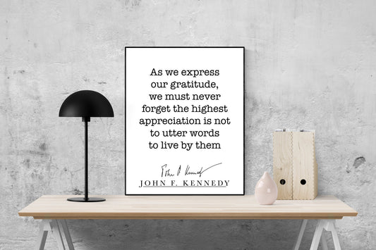 JFK Quote | As We Express Our Gratitude | Modern Minimalist Art | Inspirational Print | Black & White | Office Decor
