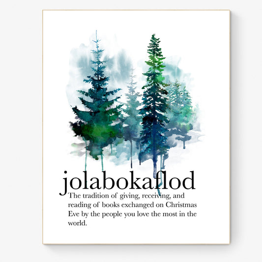 Jolabokaflod | Christmas Book Flood | Icelandic Holiday Tradition | Bibliophile | Pine Tree Art Print