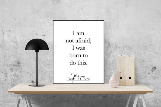 Joan Of Arc Quote Print | I Am Not Afraid; I Was Born To Do This | Modern Minimalist Art | Inspirational Print | Office Decor | Historical