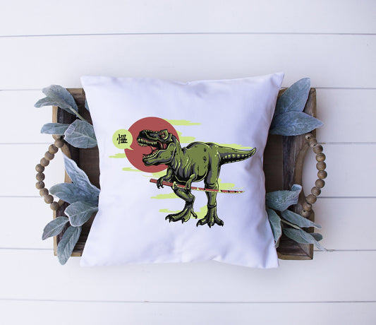 Ninja T-Rex Throw Pillow – Funny Dinosaur Pillow Cover – 18x18 in – Made in USA Home Decor – Unique Gift for Dino Lovers & Martial Arts Fans
