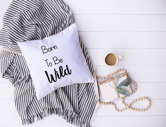 Born to Be Wild Pillow – White Throw Pillow with Quote – 18x18 – Nursery, Kids Room, or Bold Home Decor – Bedroom Living Room – Made in USA