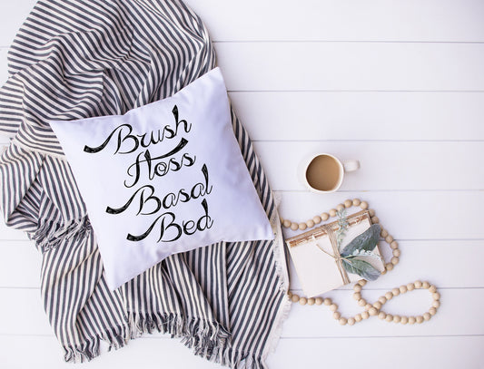 T1D Humor | Brush Floss Basal Bed | Diabetes | Decorative Pillow | Custom Designed | Made In The USA