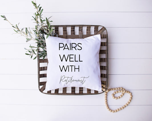 Retirement Gift Decorative Pillow | Personalized with Quote 'Pairs Well with Retirement' | Custom Designed | Made In The USA