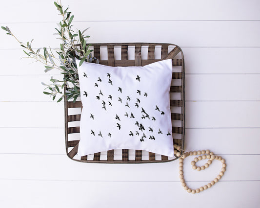 Black and White Bird Flock In Flight Decorative Pillow | Custom Designed | Made In The USA