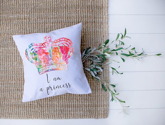 I Am A Princess | Black, White, Rainbow | Crown | Decorative Pillow | Custom Designed | Made In The USA